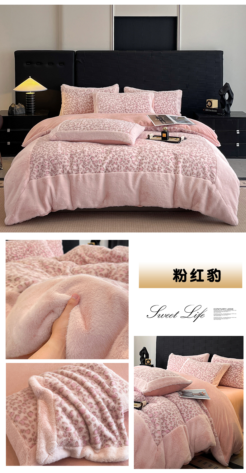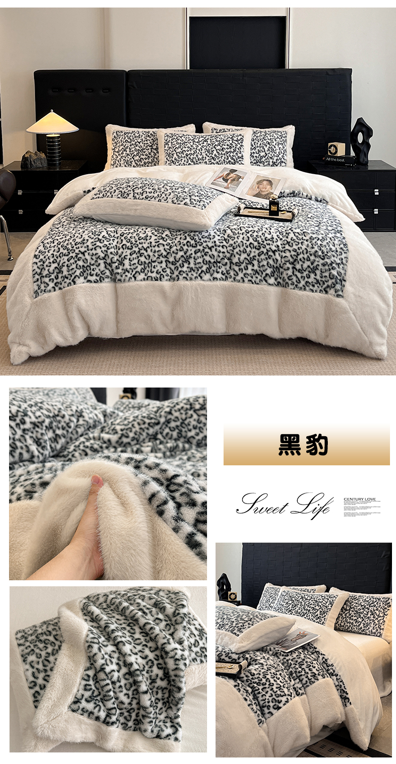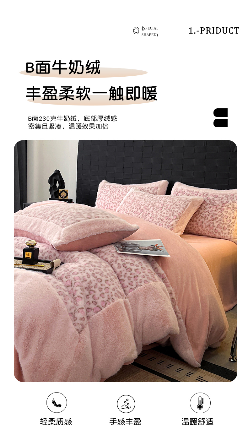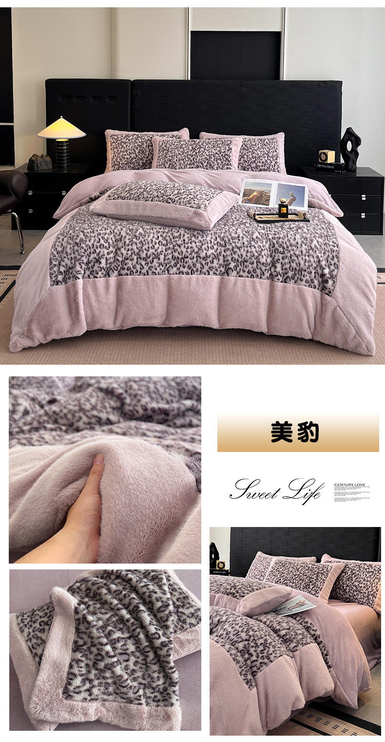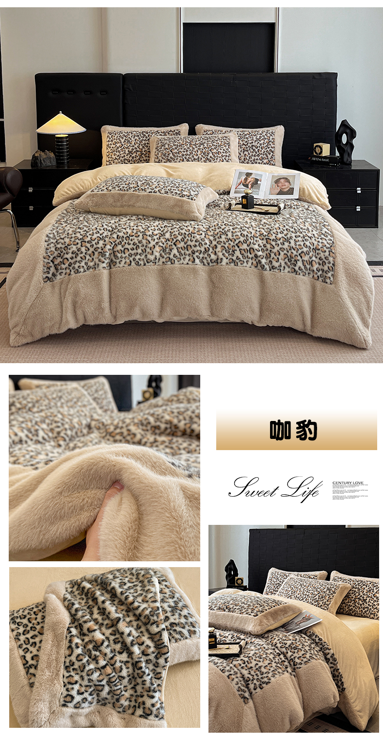 - - 2025新款亲肤舒适水貂绒豹纹大宽边系列四件套