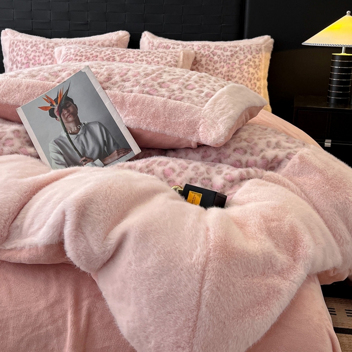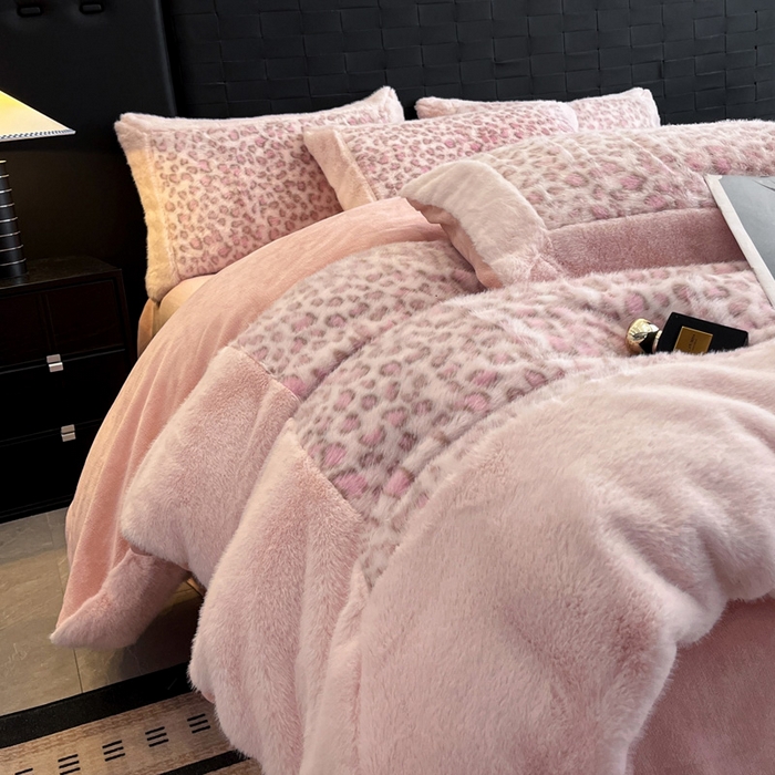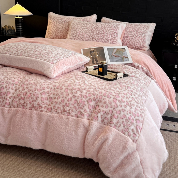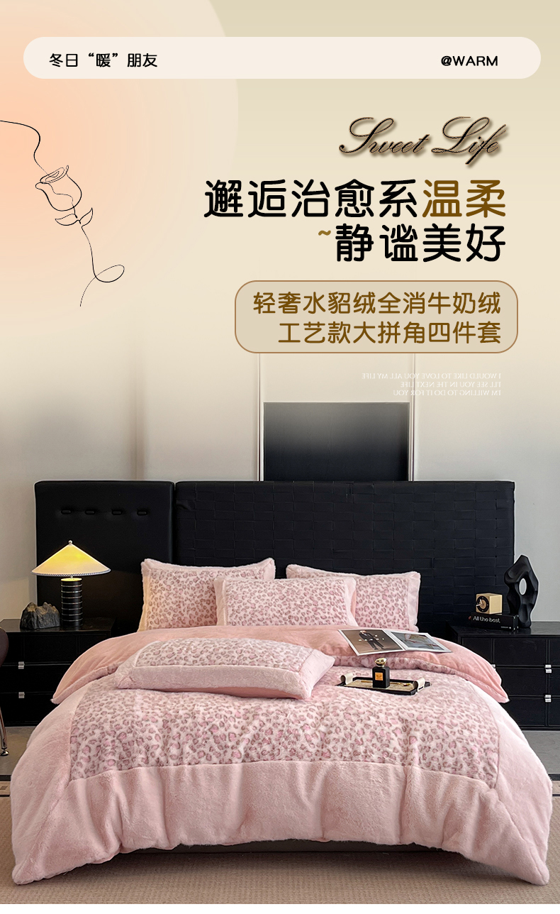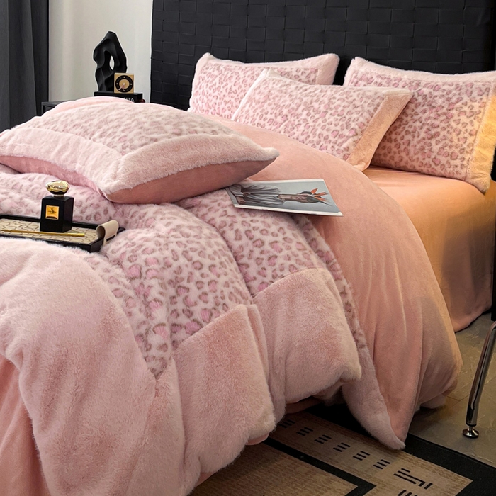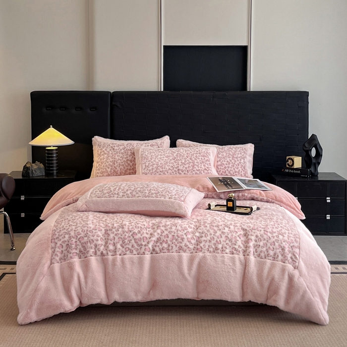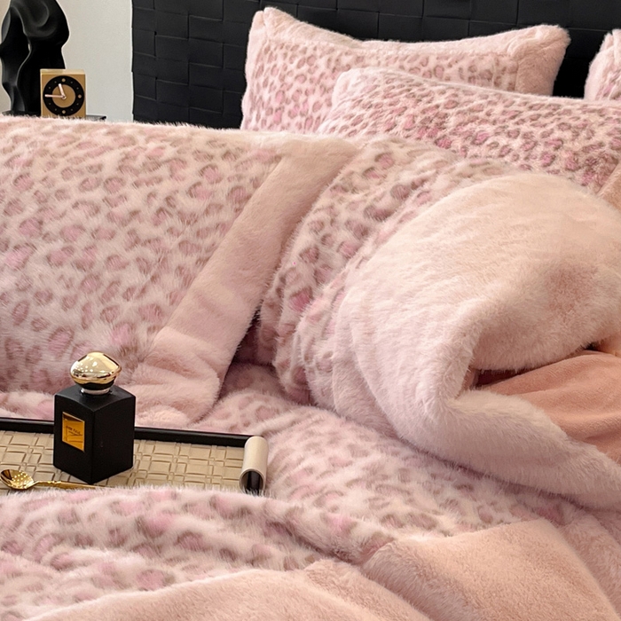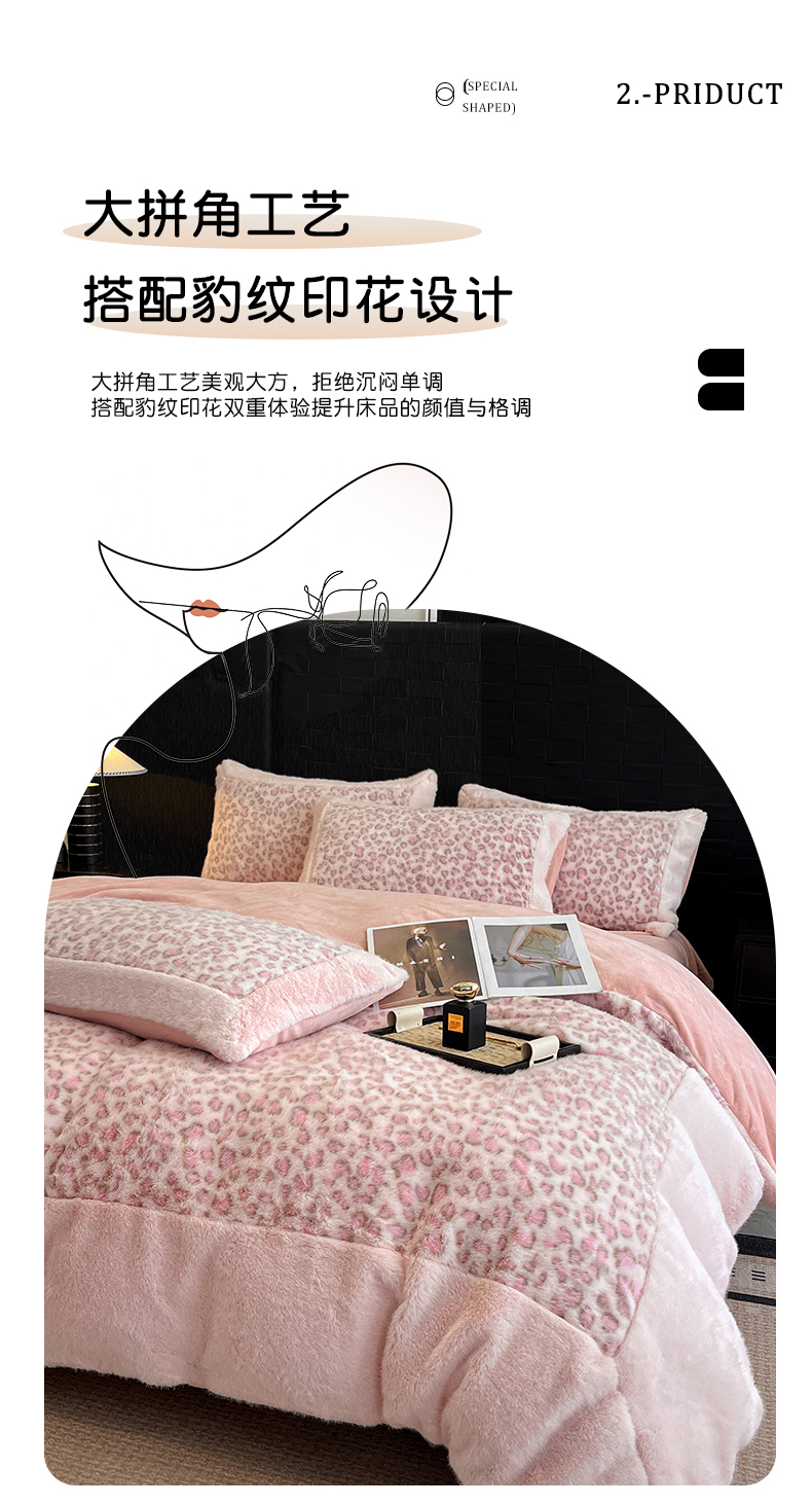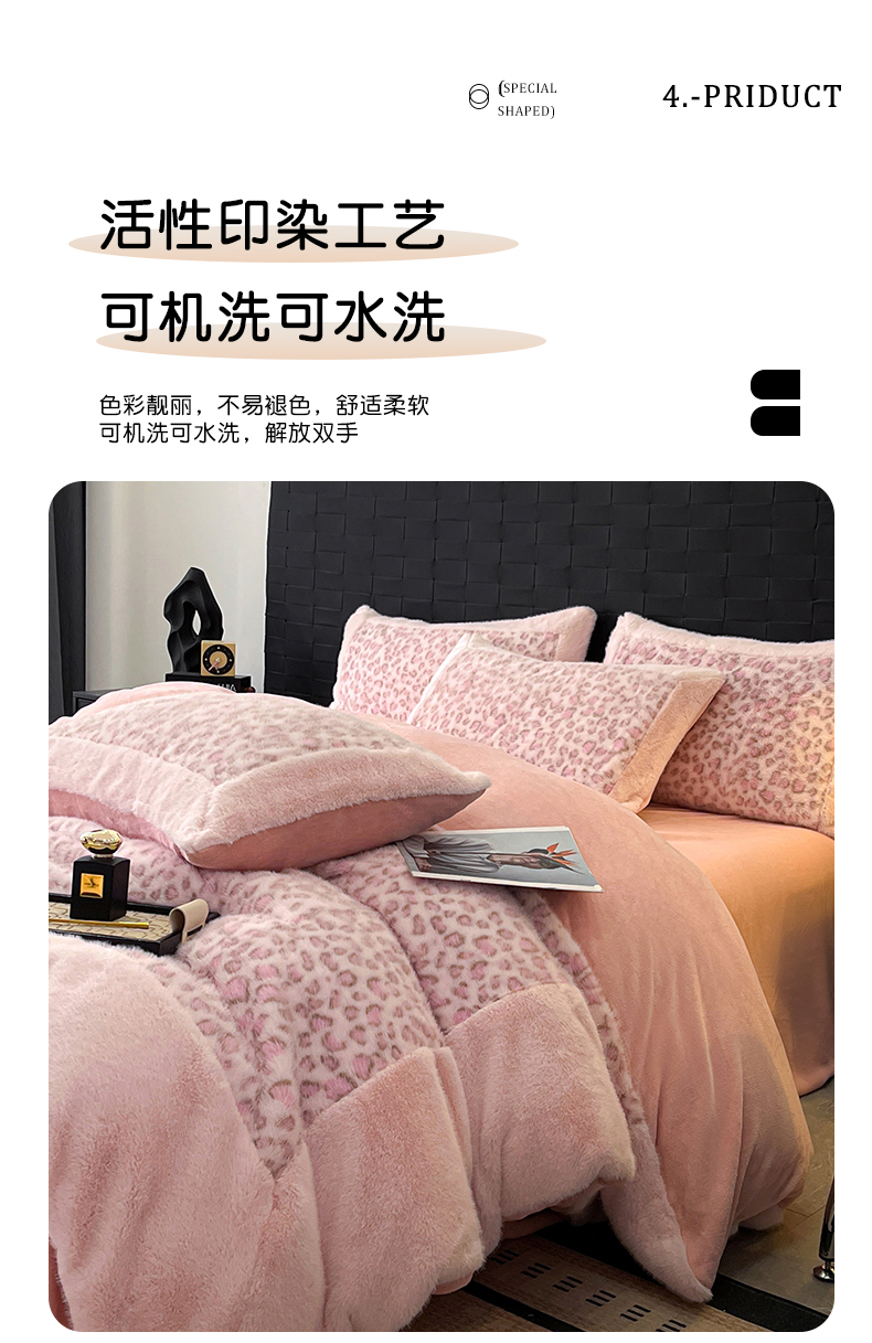 - - 2025新款亲肤舒适水貂绒豹纹大宽边系列四件套