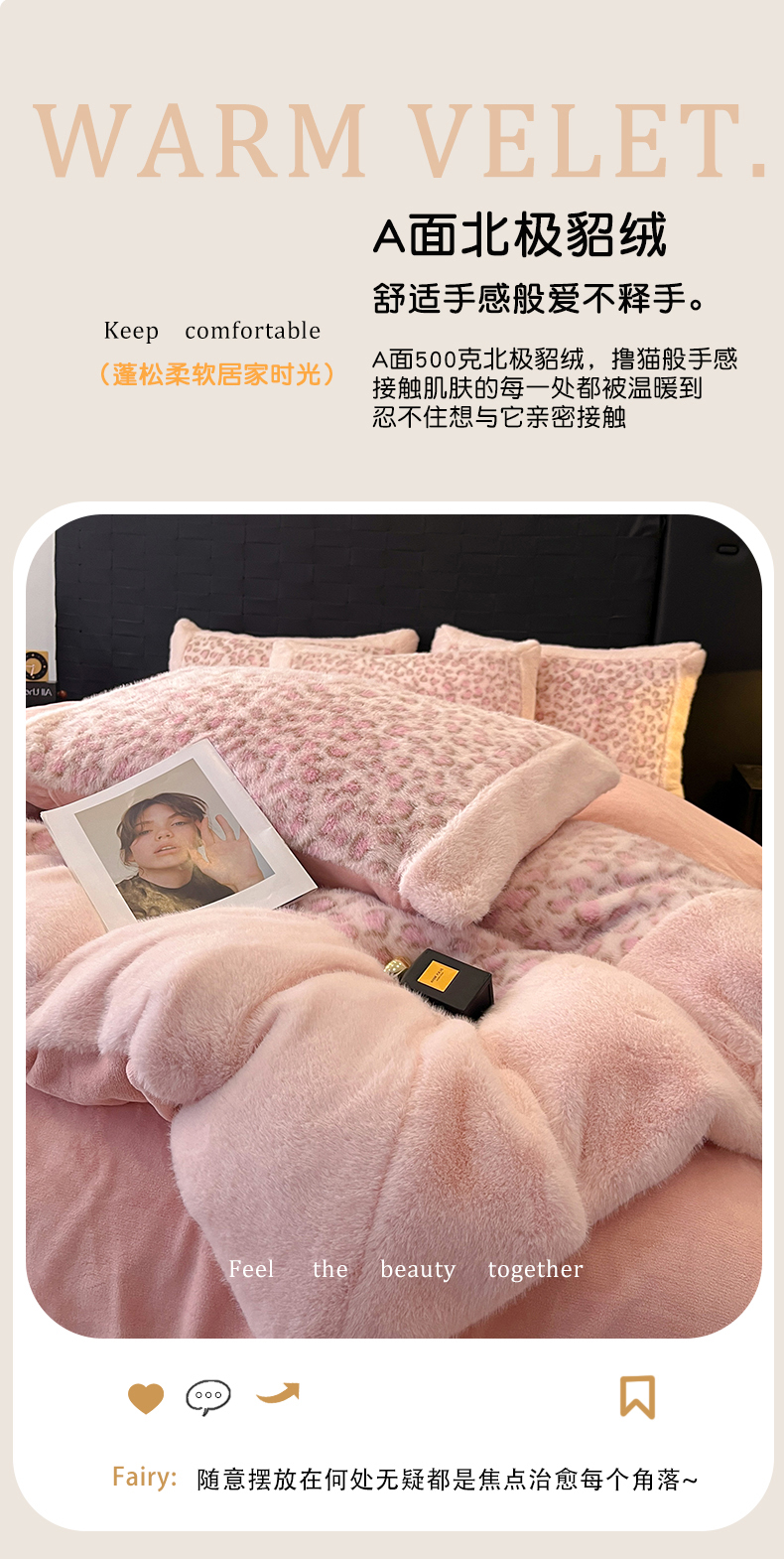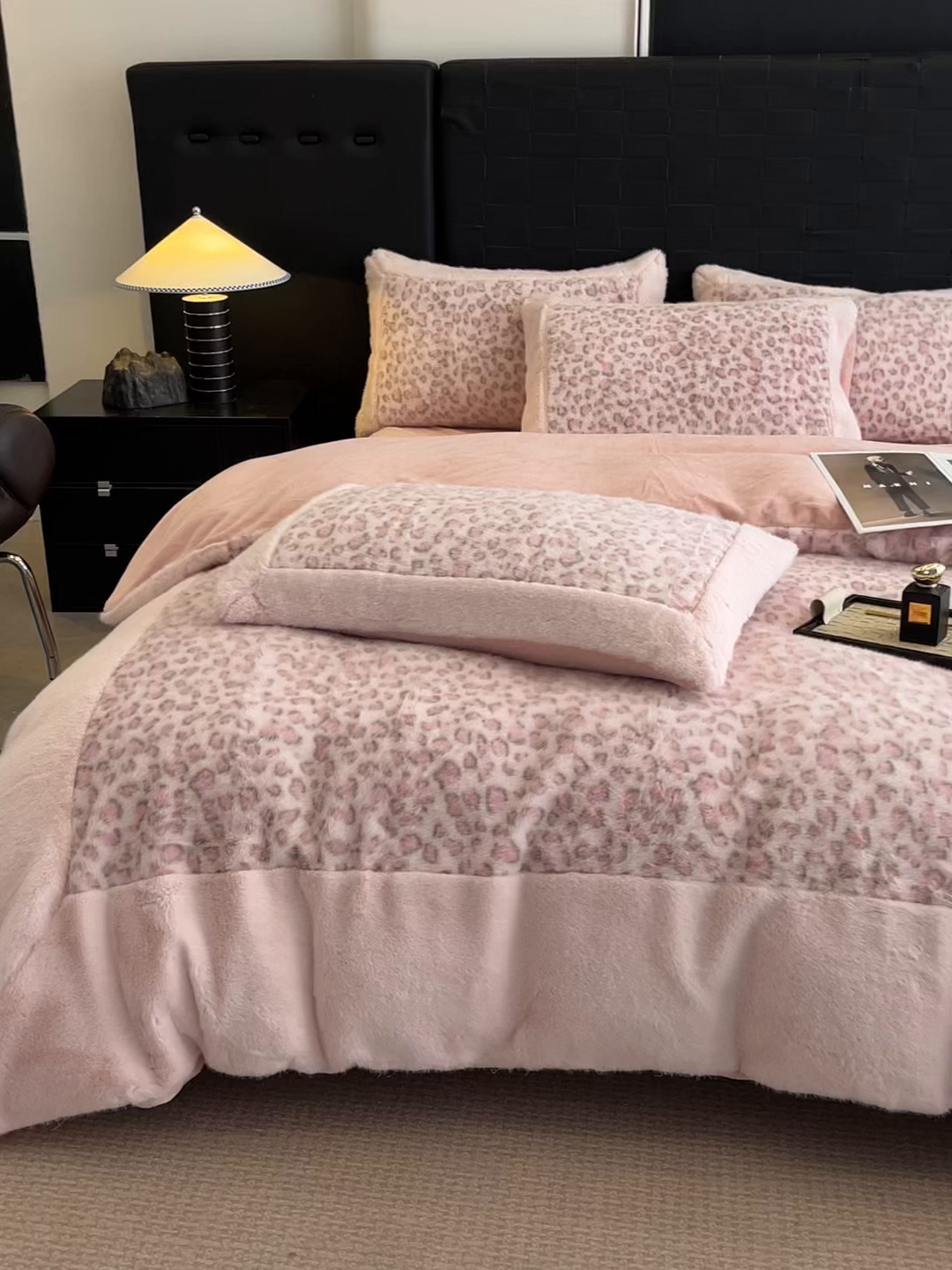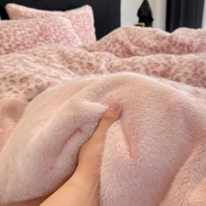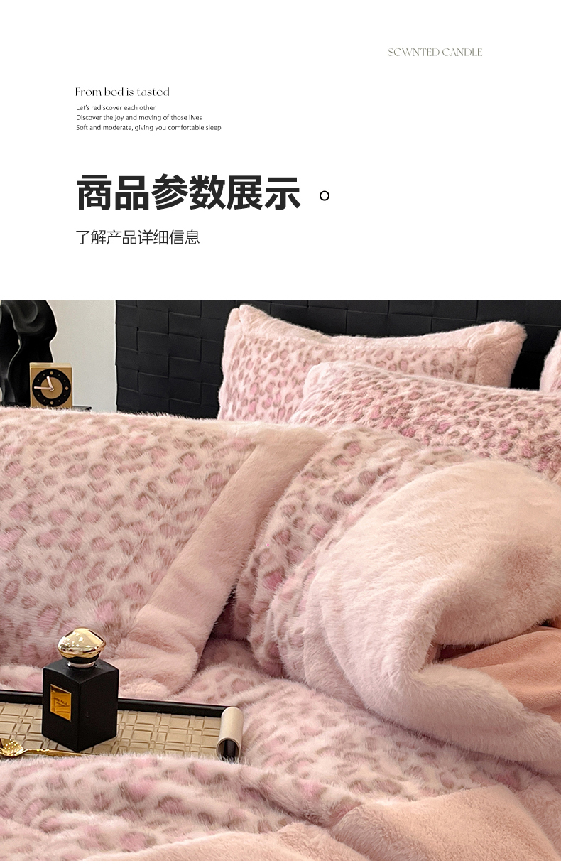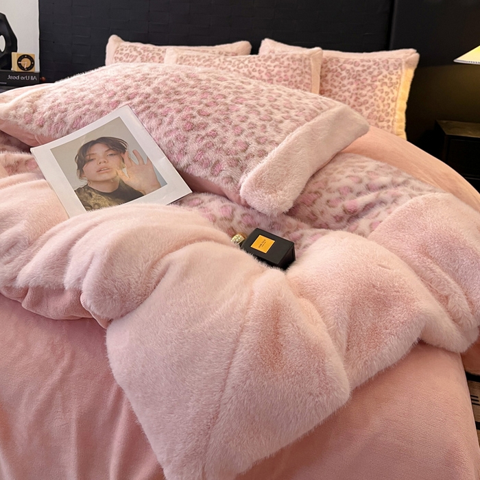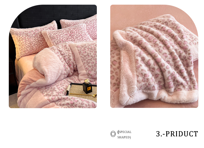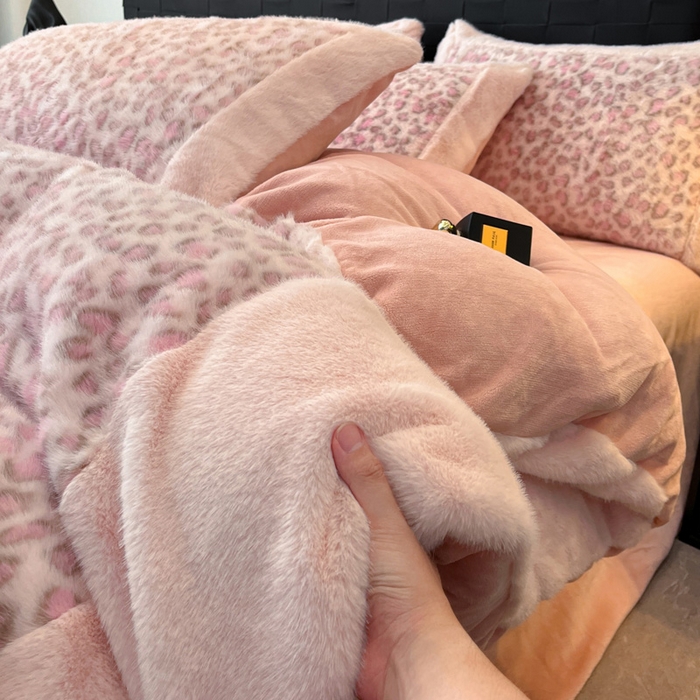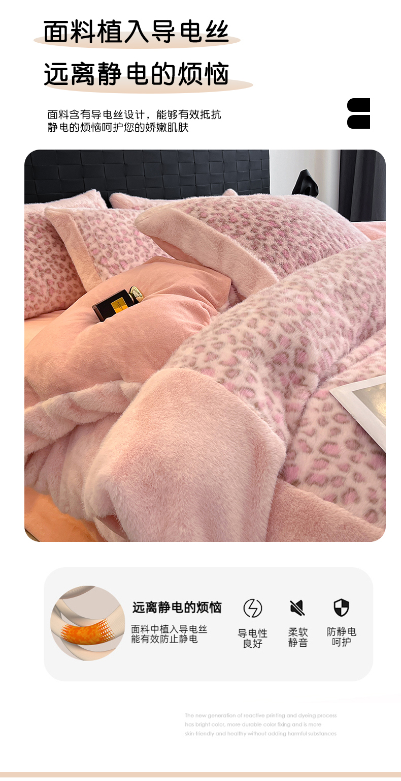 - - 2025新款亲肤舒适水貂绒豹纹大宽边系列四件套