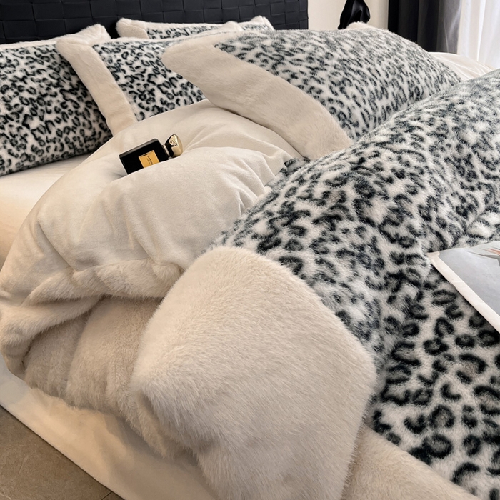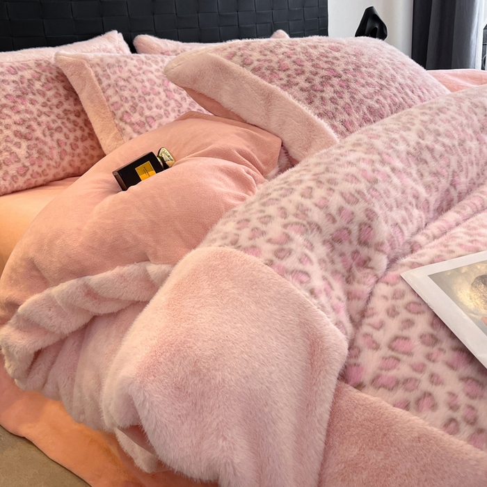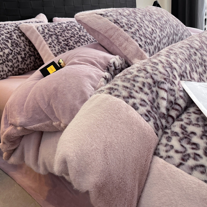 - + 2025新款亲肤舒适水貂绒豹纹大宽边系列四件套
